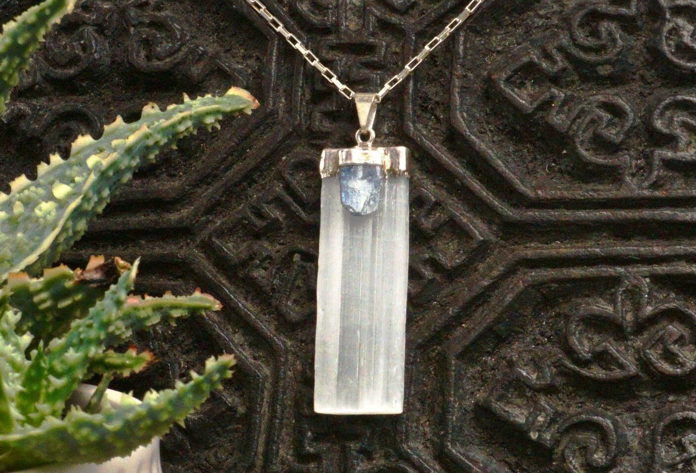 selenite ~ kyanite amulet ~ silver chain necklace